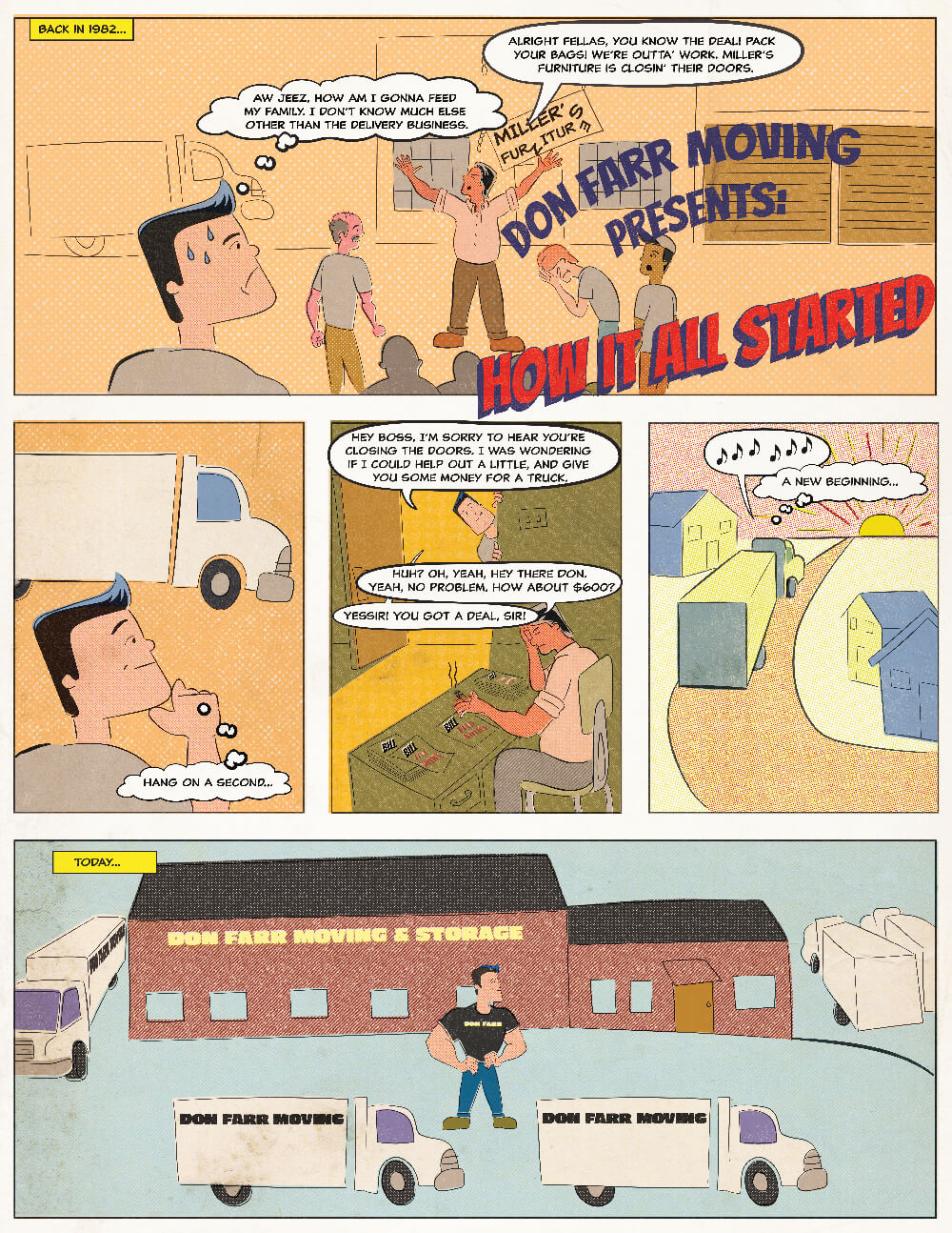 In 1982 Don Fix was being contracted for work at Miller’s Furniture in Pittsburgh, PA. When Miller’s closed, they sold their 14 ft. Ford F-600 to Don, and he began a small company with that truck. He even used his own 600 square foot garage at home for storage. Don named his company Don Farr Moving and Storage. This company grew slowly to four trucks (all 24 ft. box trucks) and a crew of 20 employees. The storage facility at that time consisted of about 400 square feet also known as his garage.